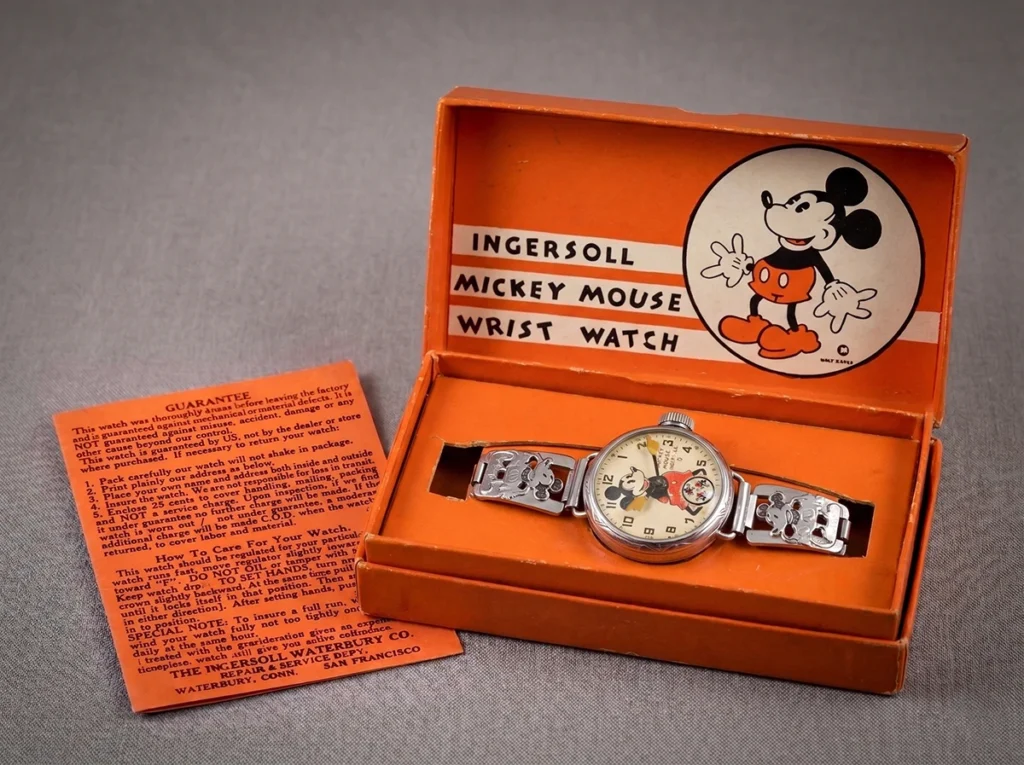The story begins with the original icon. Introduced by Ingersoll-Waterbury in 1933, the first famous Mickey Mouse watch created the visual formula that made character watches so instantly recognisable. With Mickey at the centre of the dial and his arms used to tell the time, it transformed a simple watch into something playful, memorable, and entirely new. It was an immediate success, selling 11,000 pieces at Macy’s on the first day and more than two million within about a year and a half. For collectors, this is the watch that truly started the category.